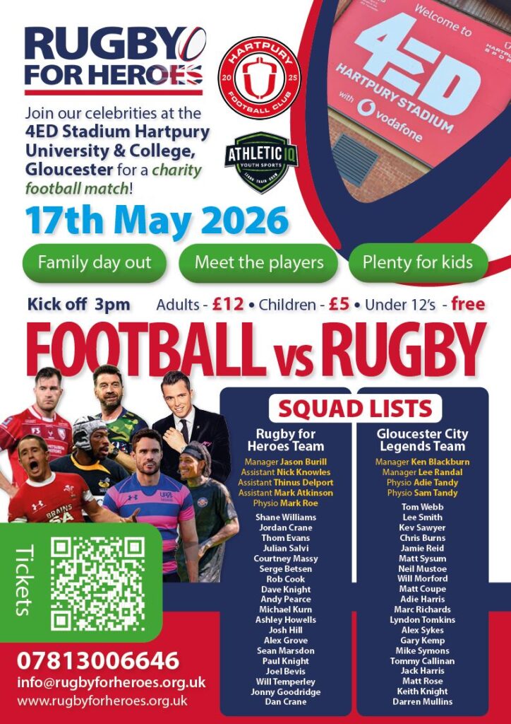 For more information about the game, the work Rugby For Heroes do, admission and the day of the event visit rugbyforheroes.org.uk